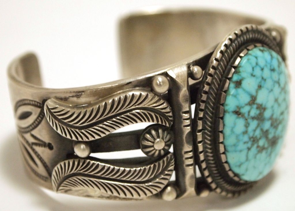 Old Pawn Navajo Kingman Turquoise Sterling Silver Cuff Bracelet - Calvin Martinez