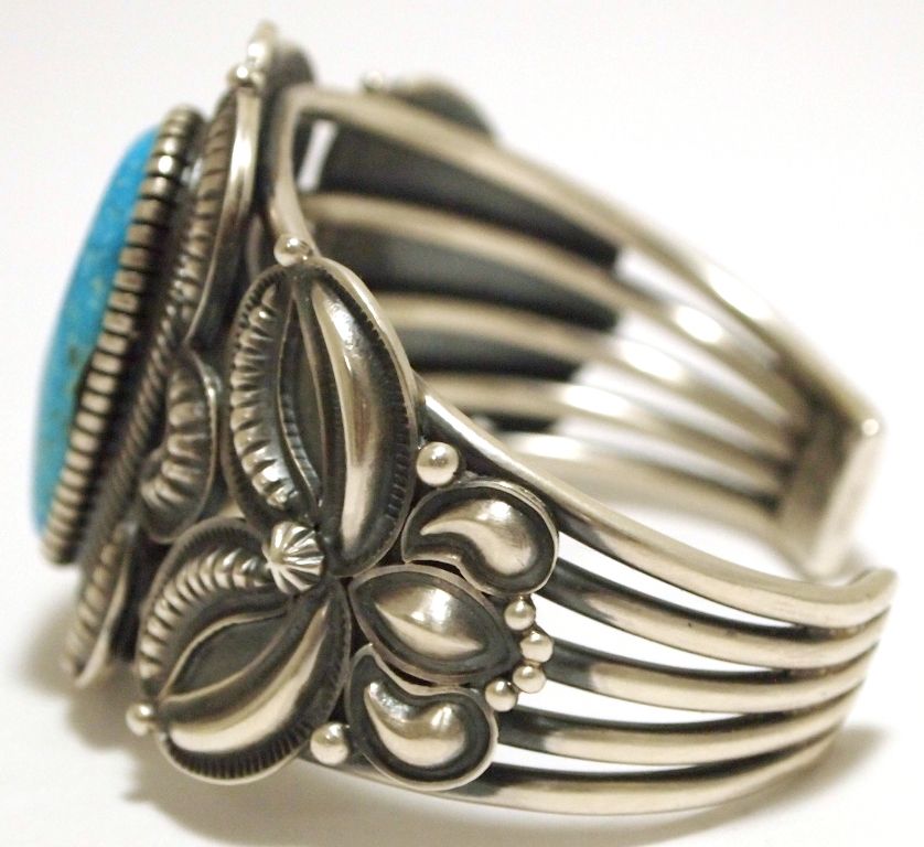 Old Pawn Navajo Kingman Turquoise Sterling Silver Cuff Bracelet - Kirk Smith