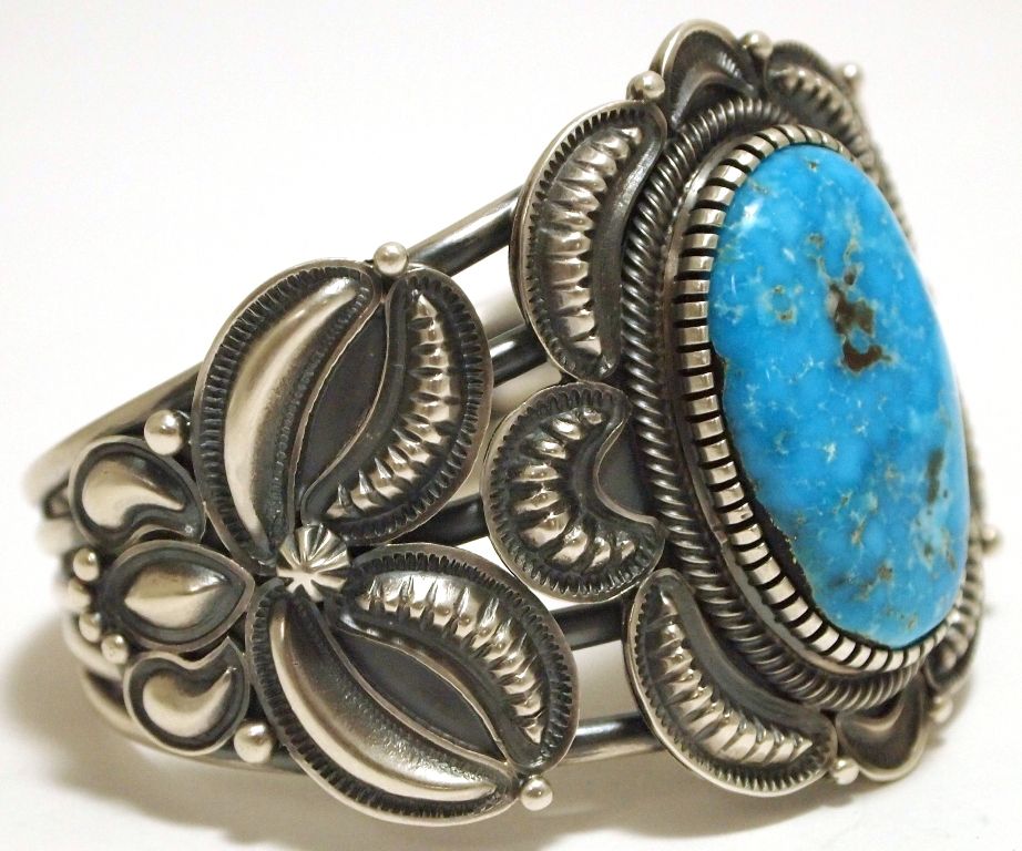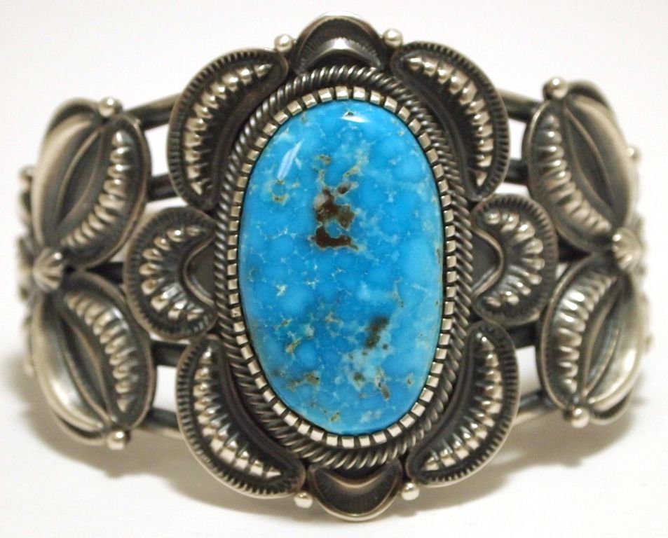 Old Pawn Navajo Kingman Turquoise Sterling Silver Cuff Bracelet - Kirk Smith