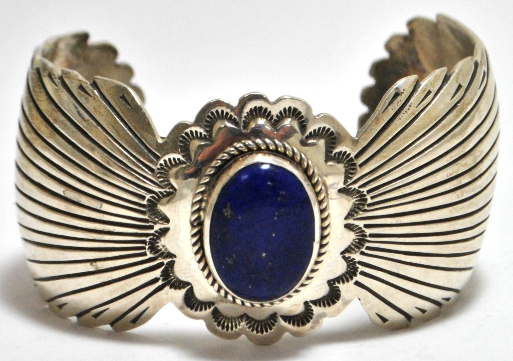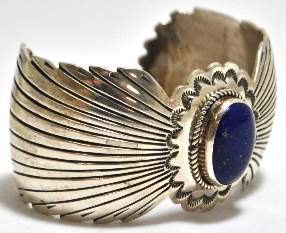 Old Pawn Navajo Lapis Lazuli Sterling Silver Cuff Bracelet - AJ Platero