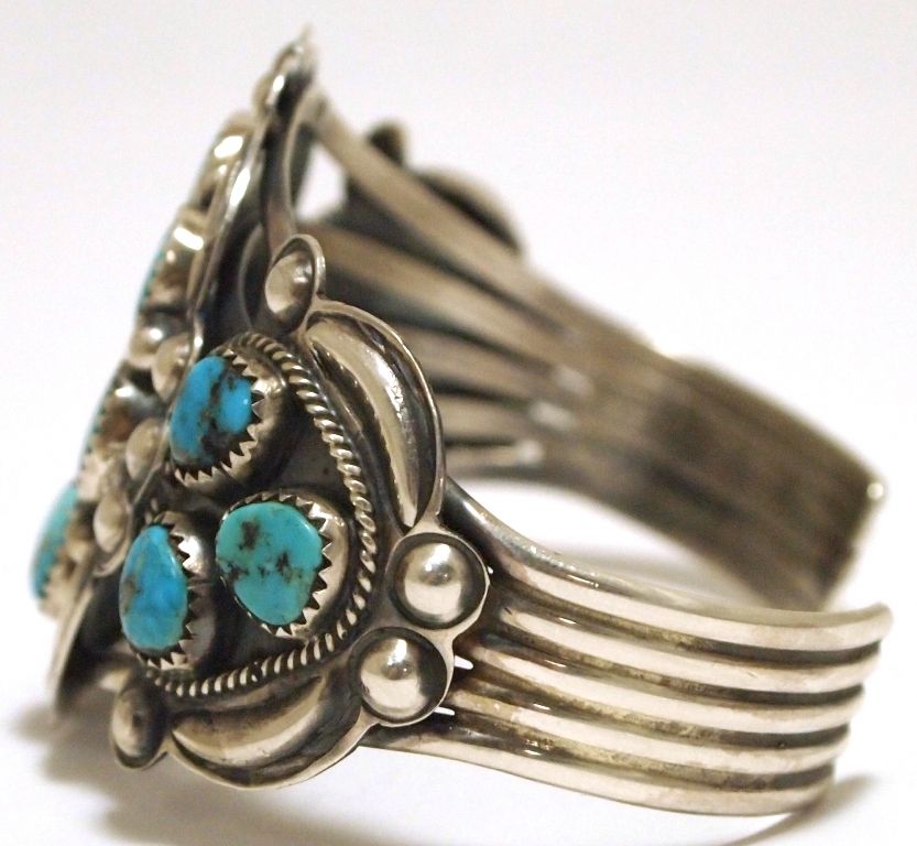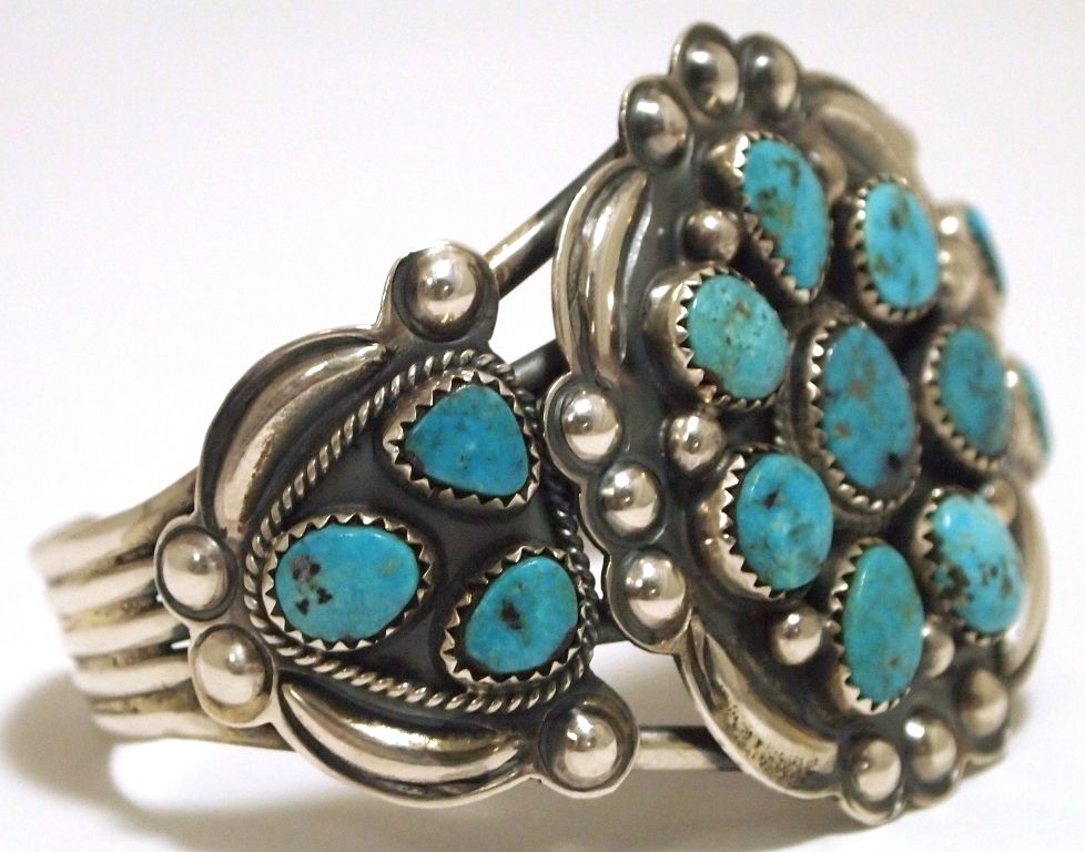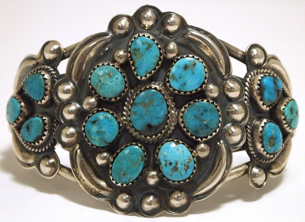 Old Pawn Navajo Morenci Turquoise Sterling Silver Cuff Bracelet - Henry Sam