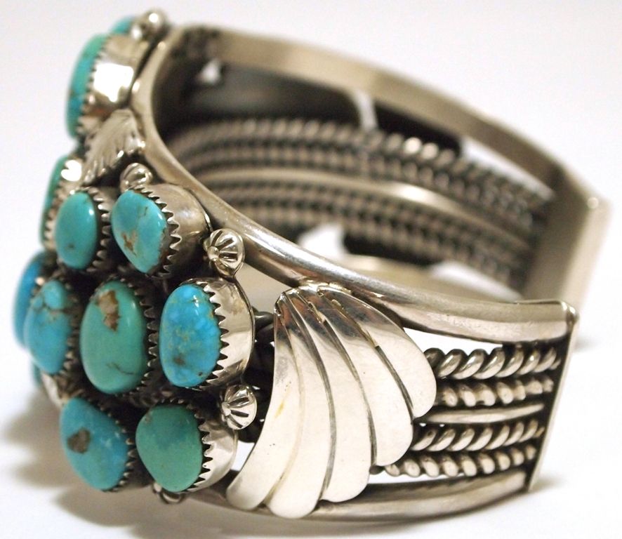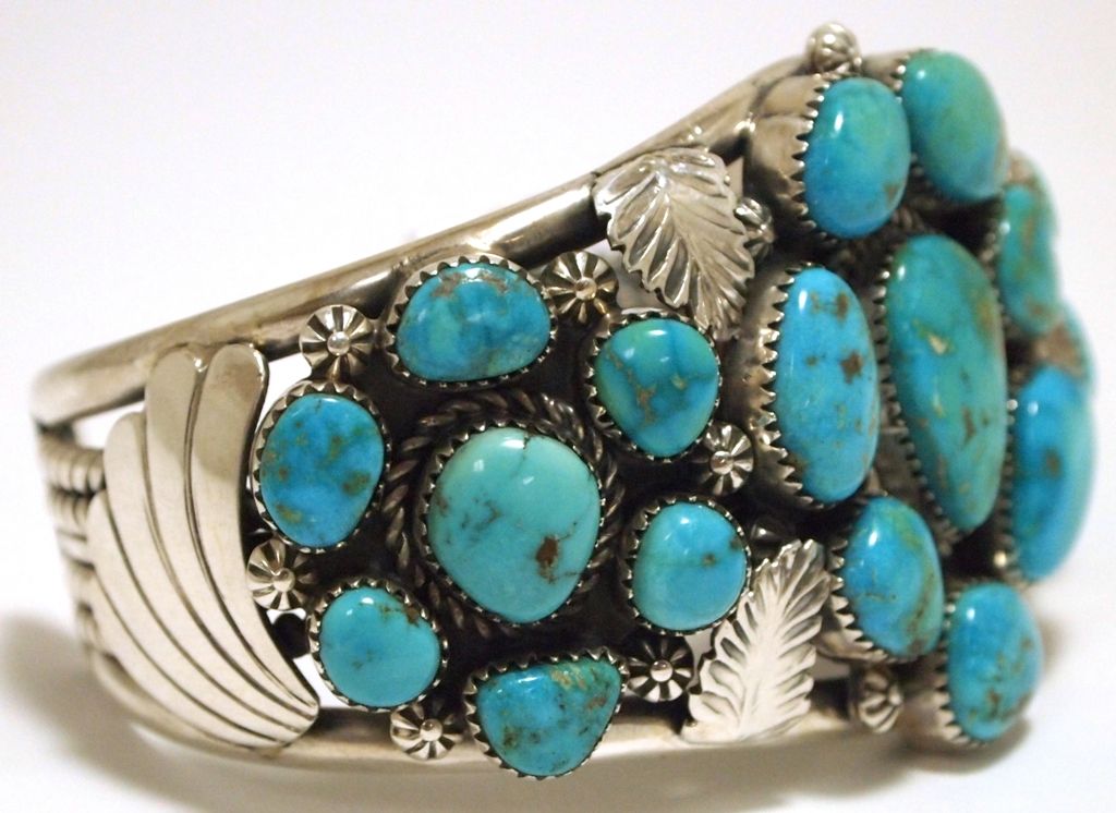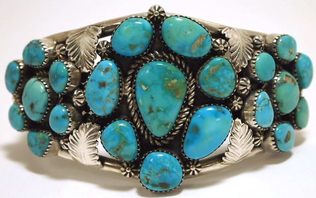 Old Pawn Navajo Morenci Turquoise Sterling Silver Cuff Bracelet - Mary Morgan