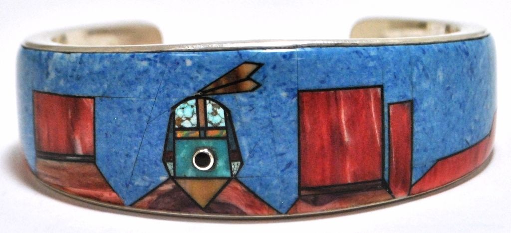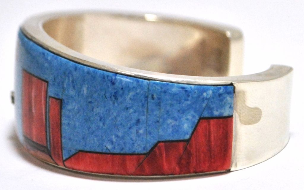 Old Pawn Navajo Multi-Stone Inlay Sterling Silver Cuff Bracelet - Francis