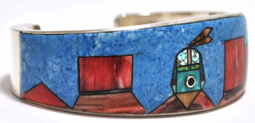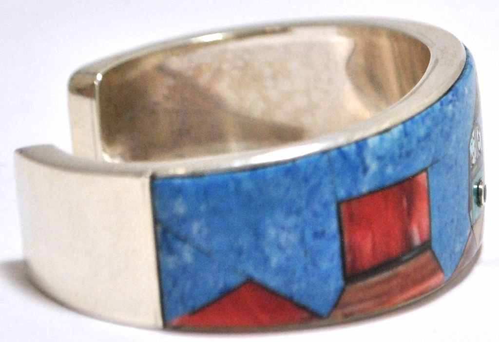 Old Pawn Navajo Multi-Stone Inlay Sterling Silver Cuff Bracelet - Francis