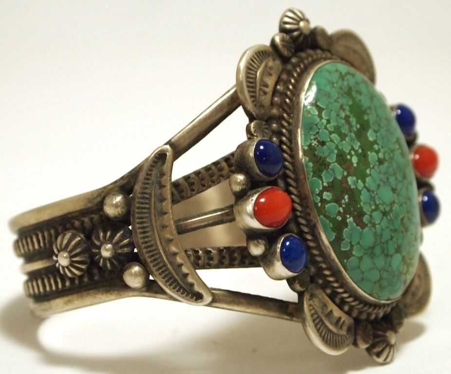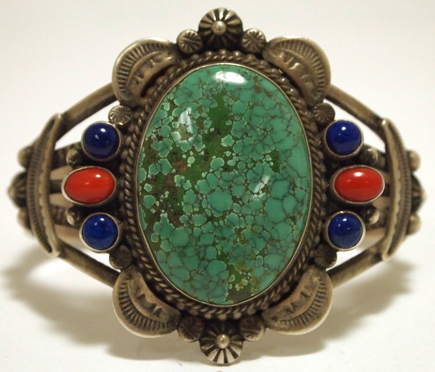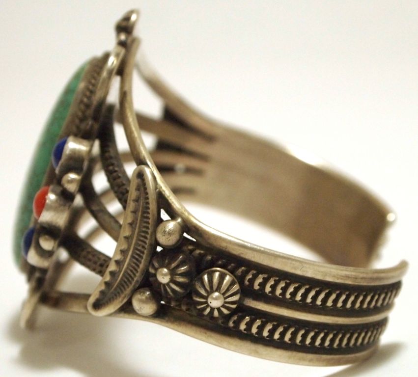 Old Pawn Navajo Multi-Stone Sterling Silver Cuff Bracelet - Darrell Cadman