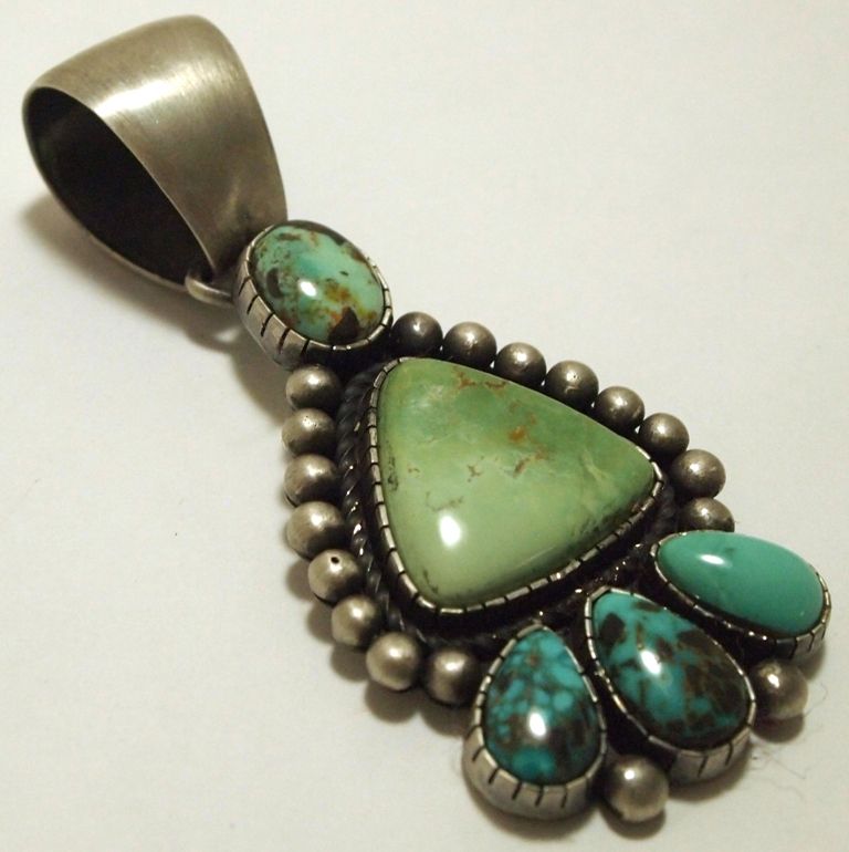 Old Pawn Navajo Multi-Turquoise Sterling Silver Pendant - Bea Tom