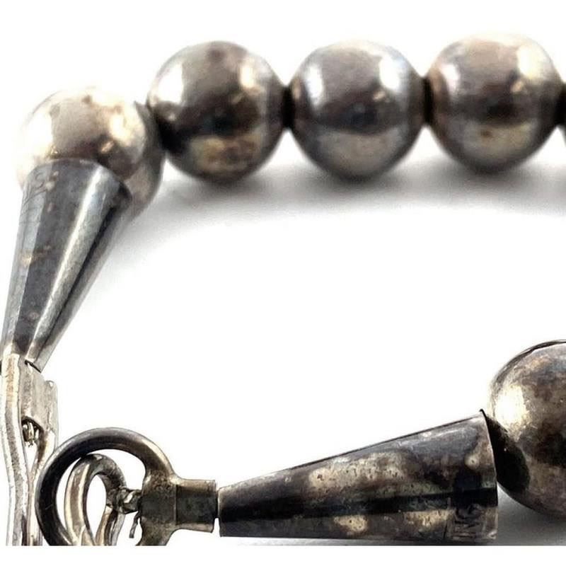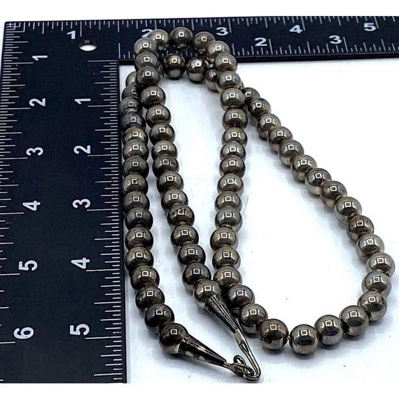 Phenomenal classic vintage Navajo sterling silver pearls necklace. Hand etched design, strung on a foxtail chain. The necklace measures about 20" long and features sterling cones and a hook/eye closure. The necklace weighs about 40Gr. Stunning collectible timeless authentic Navajo necklace, add a pendant or wear by itself. FREE SHIPPING ON ALL JEWELRY ORDERS WITHIN THE US!