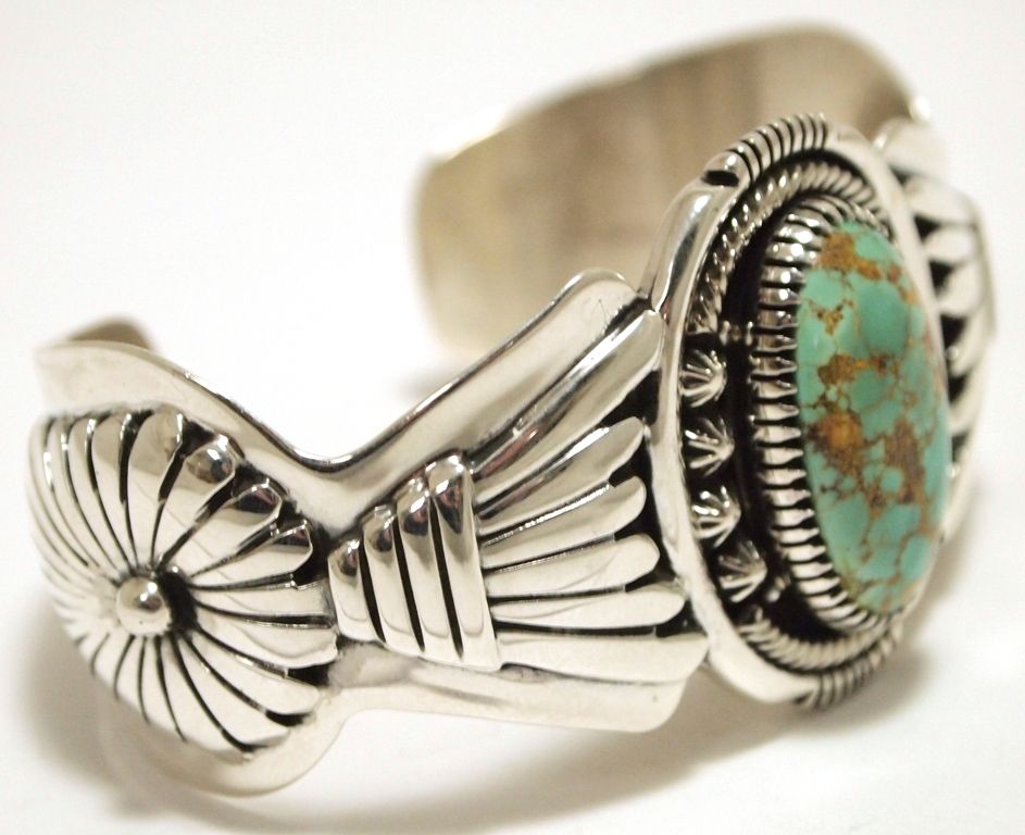 Old Pawn Navajo Persian Turquoise Sterling Silver Cuff Bracelet - Robert Kelly