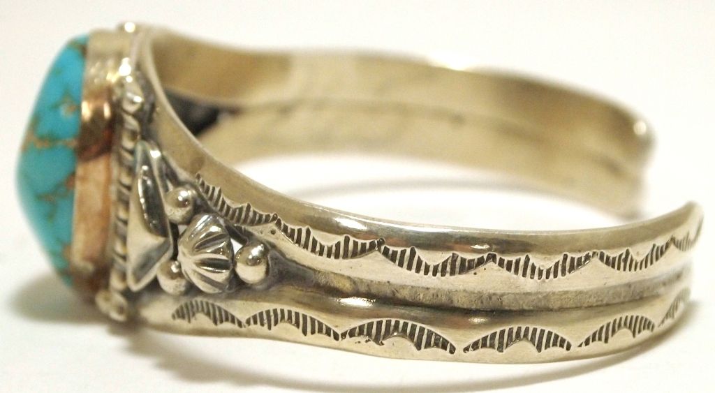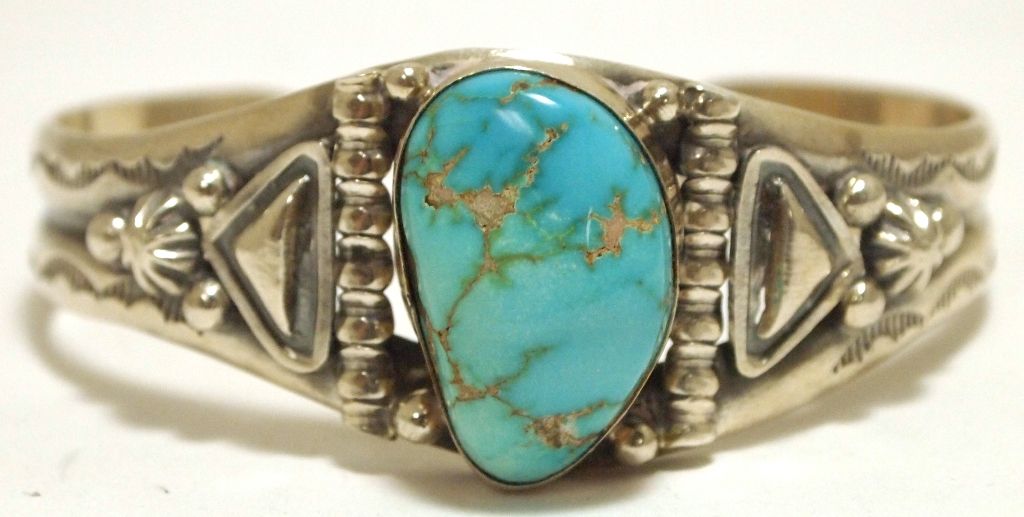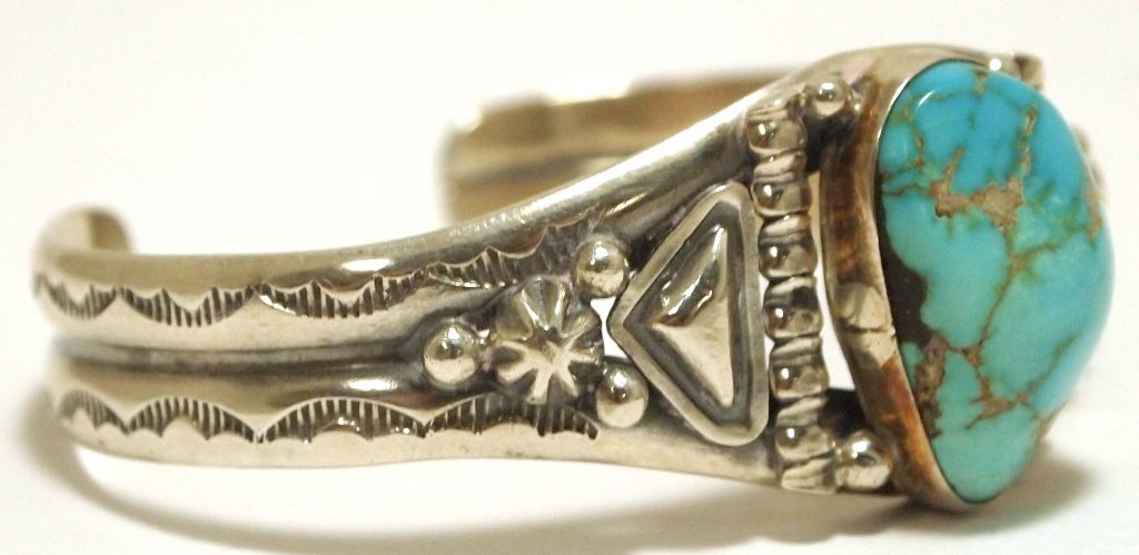 Old Pawn Navajo Pilot Mountain Turquoise Sterling Silver Cuff Bracelet - Lydia Begay