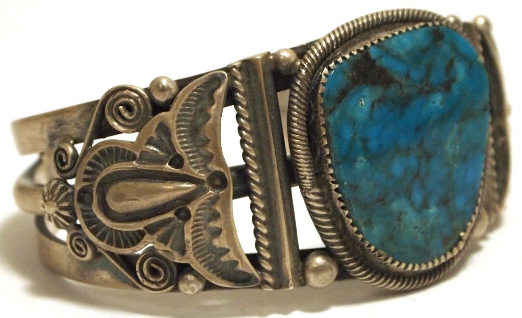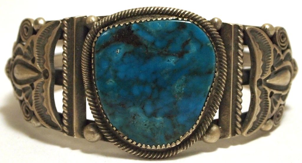 Old Pawn Navajo Royston Turquoise Sterling Silver Cuff Bracelet - Shakey