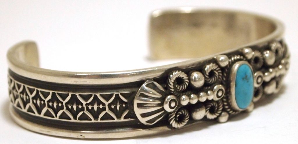 Old Pawn Navajo Sleeping Beauty Turquoise Sterling Silver Cuff Bracelet - Darrell Cadman