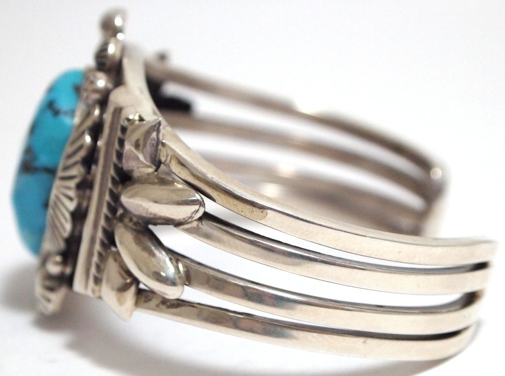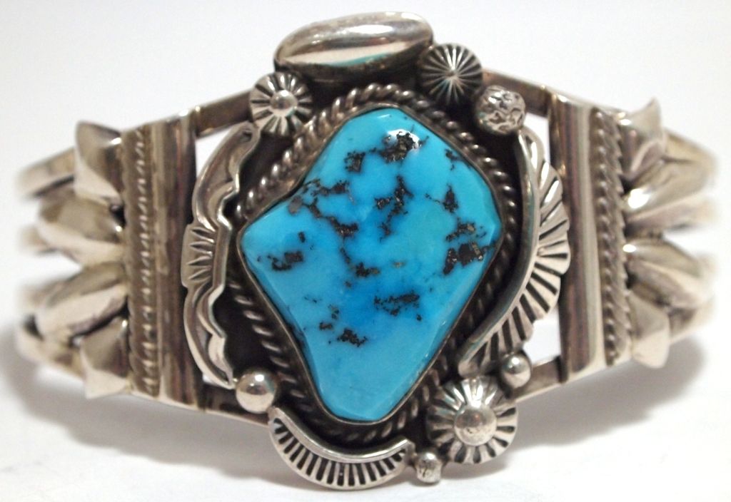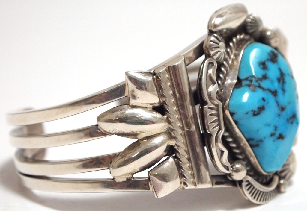 Old Pawn Navajo Sleeping Beauty Turquoise Sterling Silver Cuff Bracelet - Henry Sam
