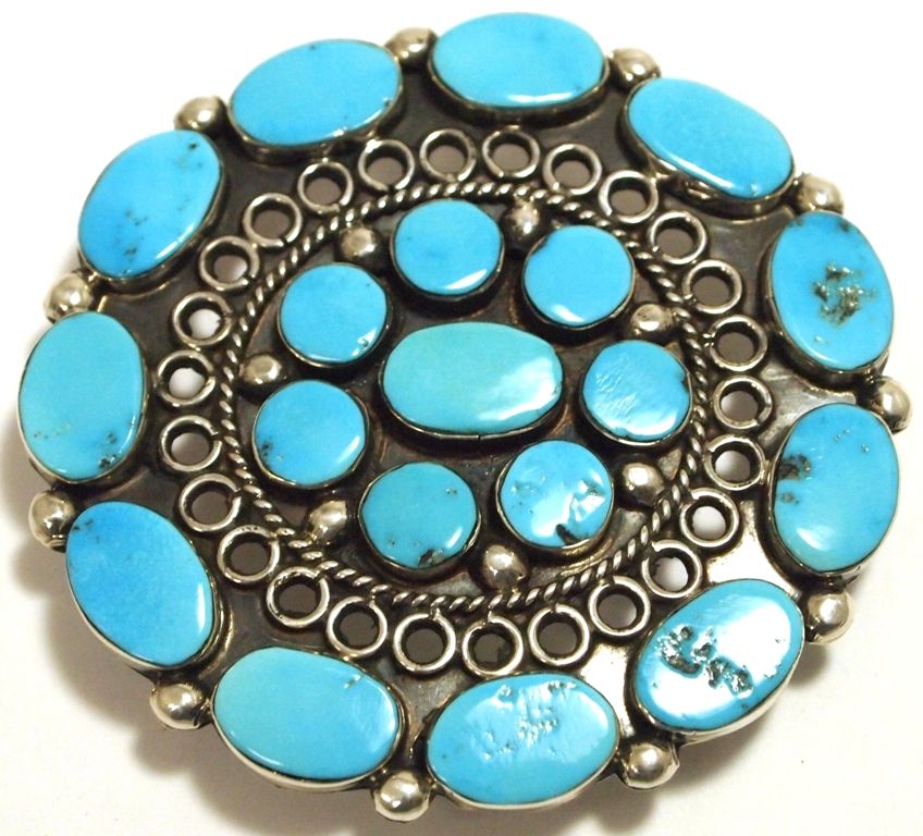 Old Pawn Navajo Sleeping Beauty Turquoise Sterling Silver Pendant/Buckle? - C. Dishta