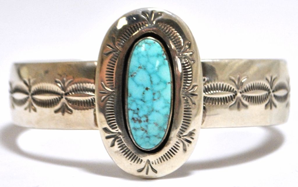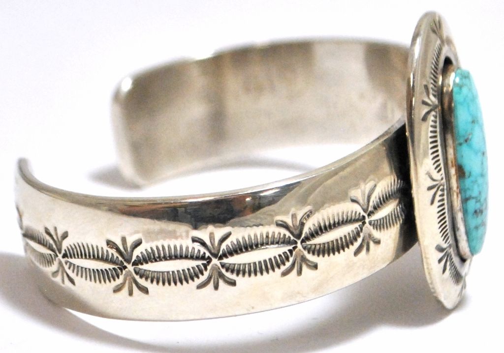 Old Pawn Navajo Spider Web #8 Turquoise Sterling Silver Cuff Bracelet - Francis