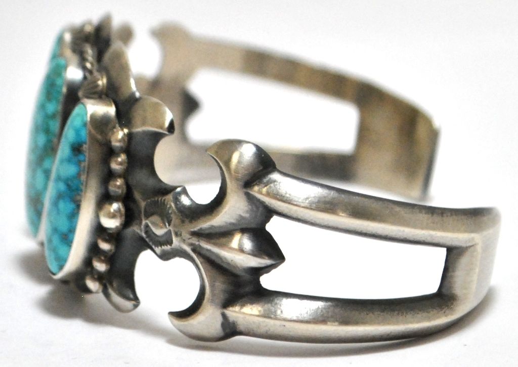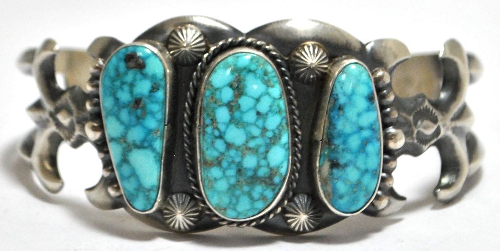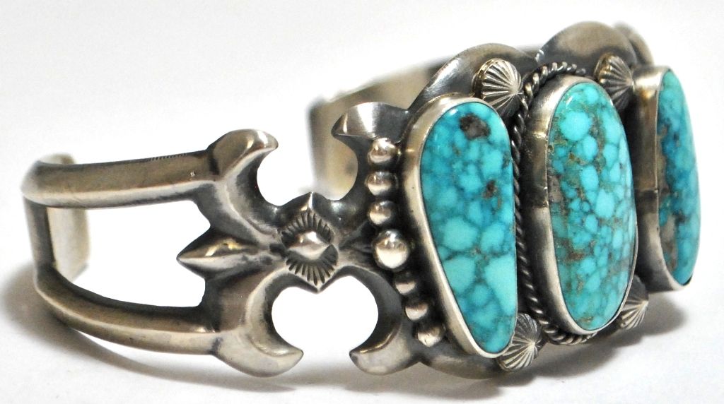Old Pawn Navajo Spider Web #8 Turquoise Sterling Silver Cuff Bracelet - Harrison Bitsue