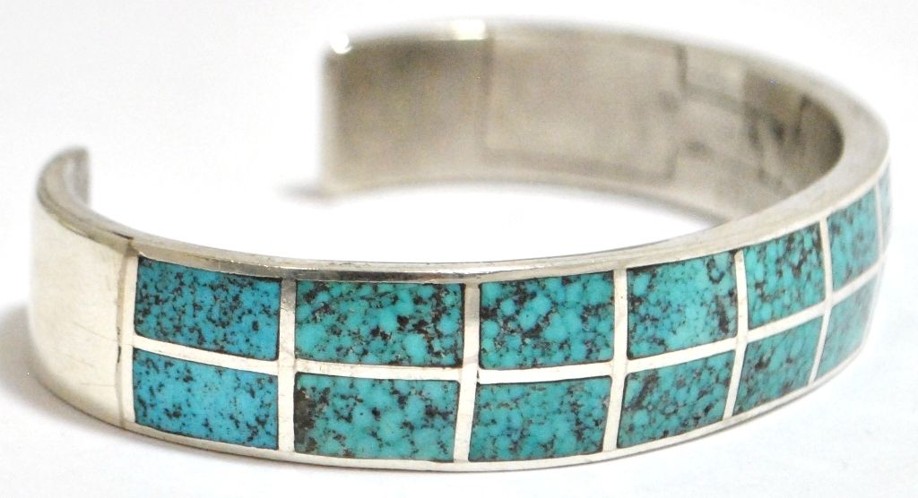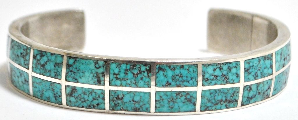 Old Pawn Navajo Spider Web #8 Turquoise Sterling Silver Cuff Bracelet - Morgan