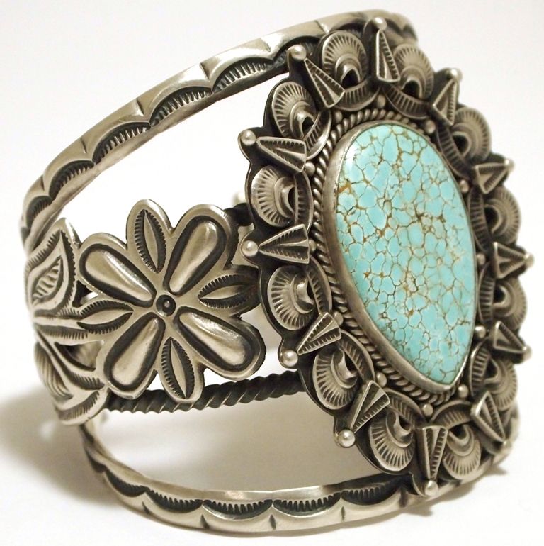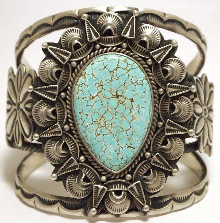 Old Pawn Navajo Spider Web #8 Turquoise Sterling Silver Cuff Bracelet - Randy Boyd