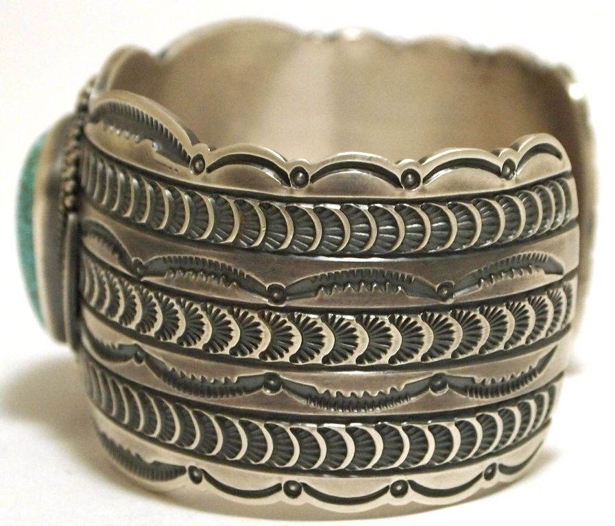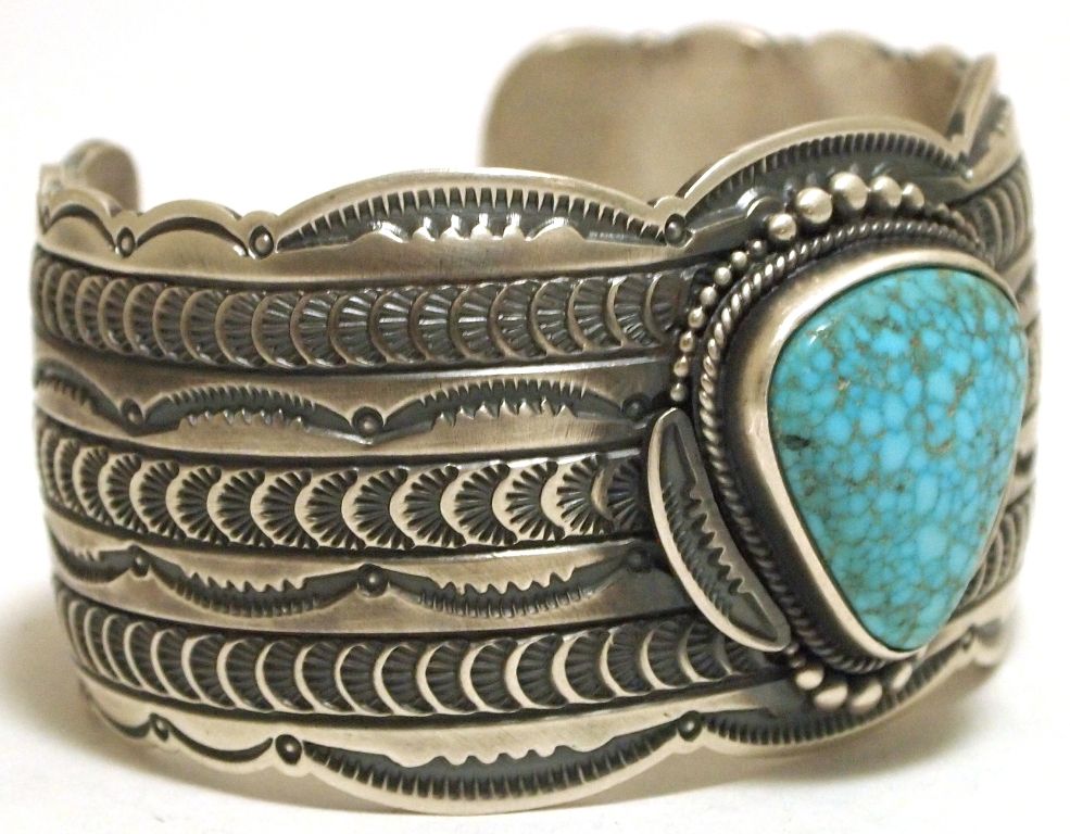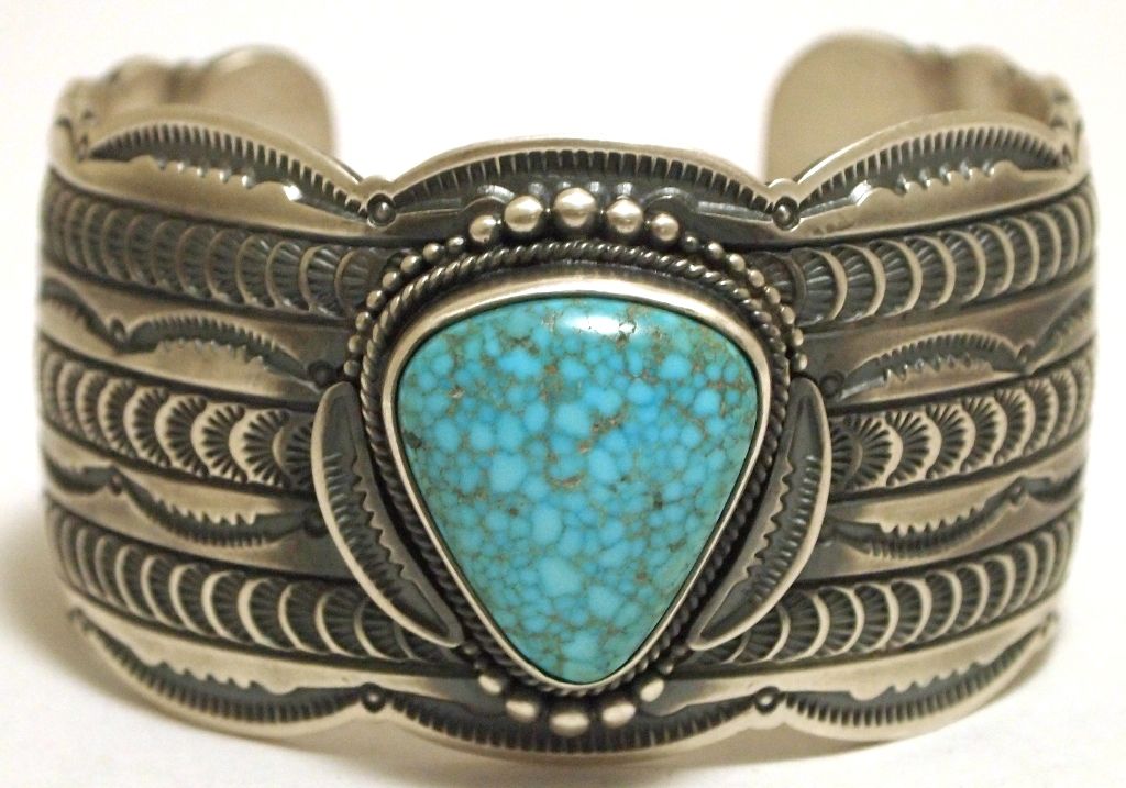 Old Pawn Navajo Spider Web Kingman Turquoise Sterling Silver Cuff Bracelet - Gene Natune
