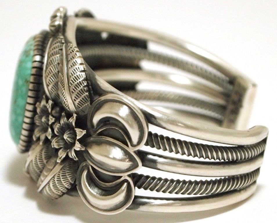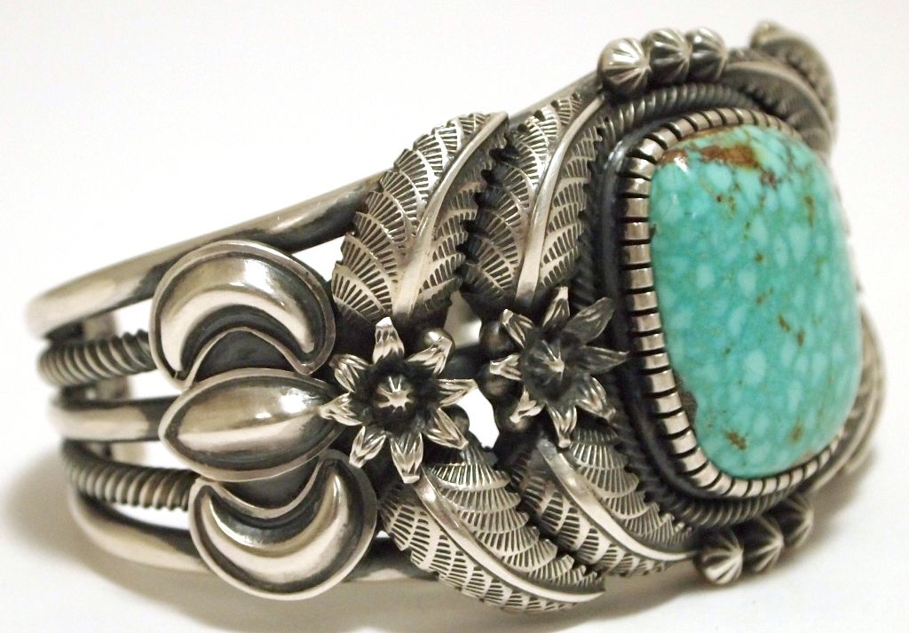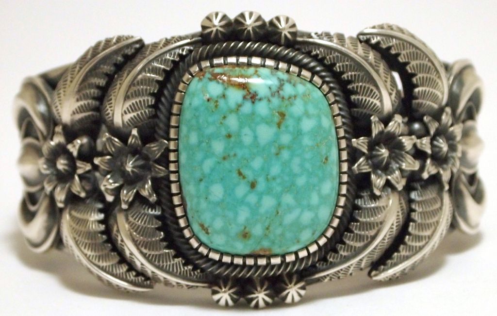 Old Pawn Navajo Spider Web Kingman Turquoise Sterling Silver Cuff Bracelet - Kirk Smith