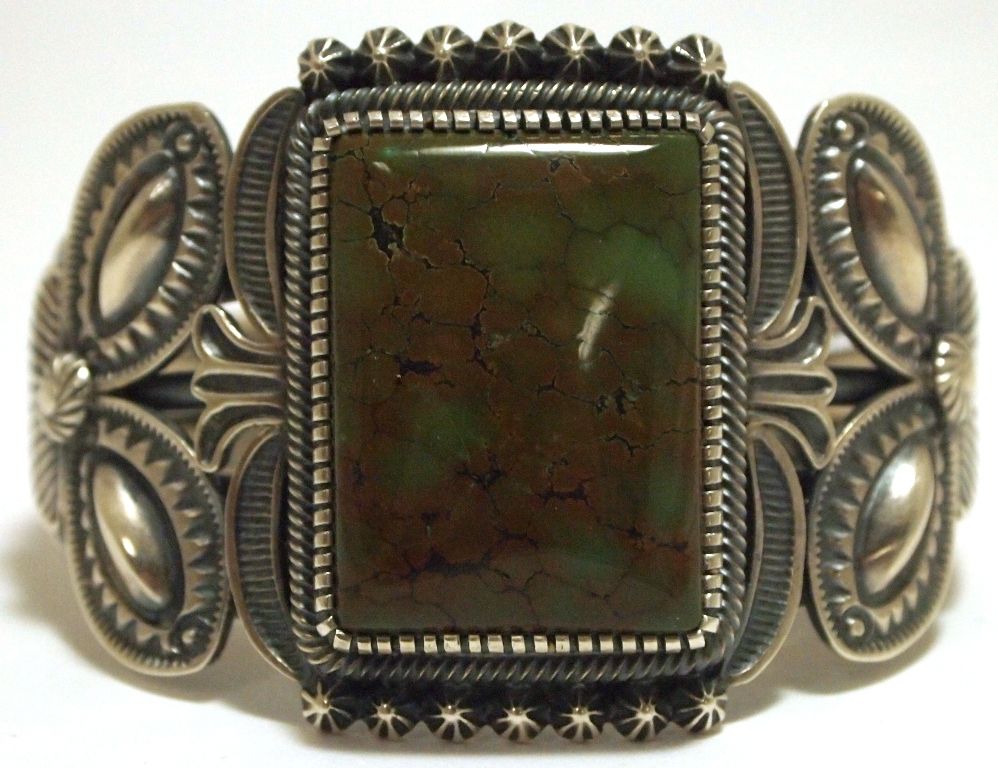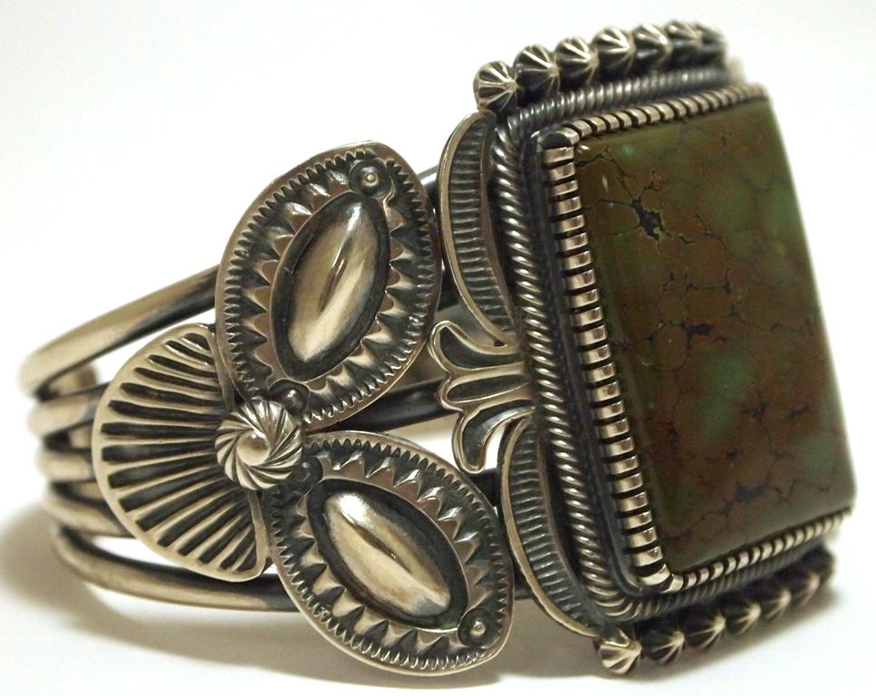 Old Pawn Navajo Spider Web Kingman Turquoise Sterling Silver Cuff Bracelet - Kirk Smith