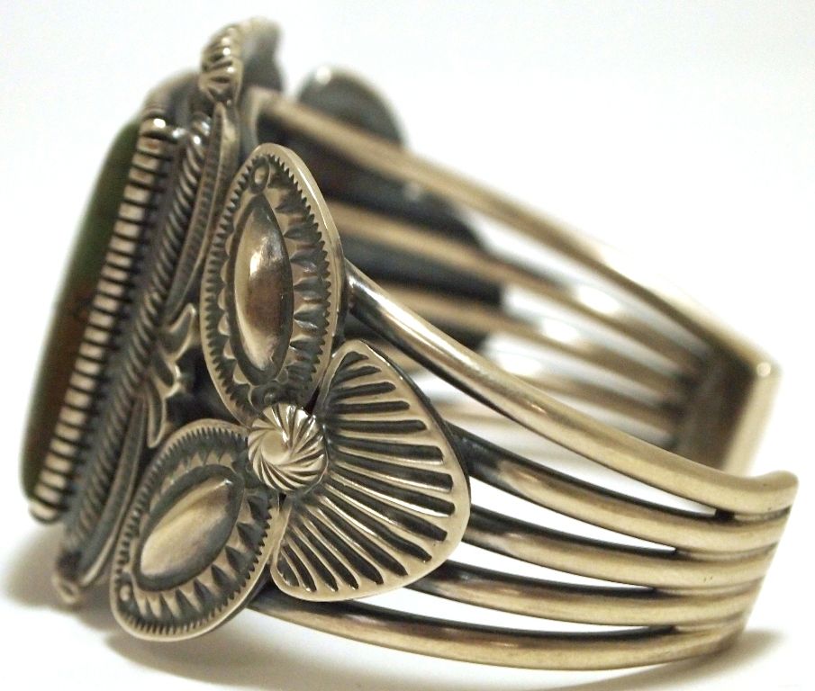 Old Pawn Navajo Spider Web Kingman Turquoise Sterling Silver Cuff Bracelet - Kirk Smith