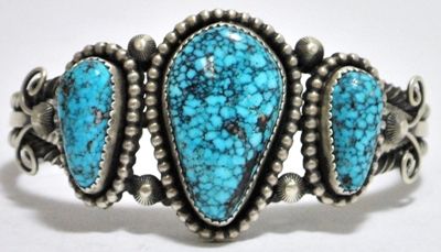 Old Pawn Navajo Spider Web Kingman Turquoise Sterling Silver Cuff Bracelet - Nelvin Burbank