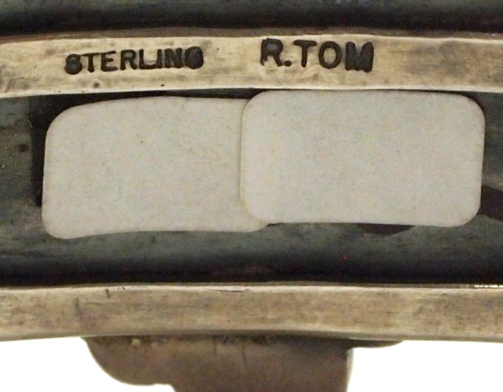 Old Pawn Navajo Spider Web Kingman Turquoise Sterling Silver Cuff Bracelet - R. Tom
