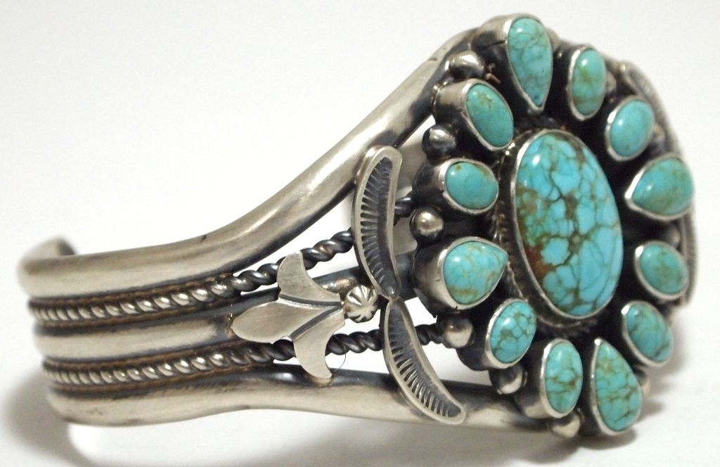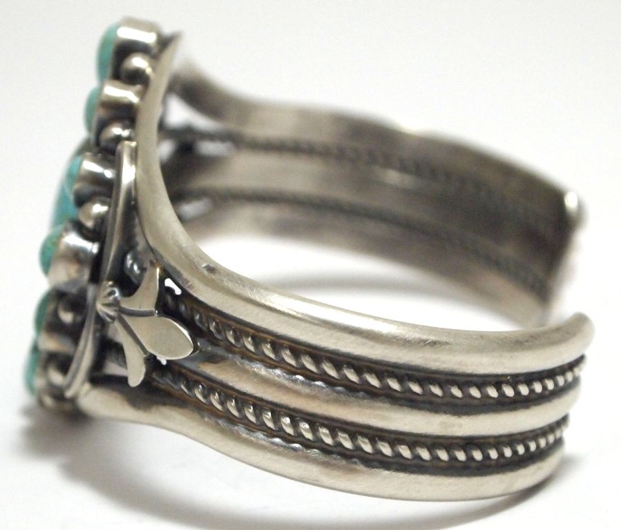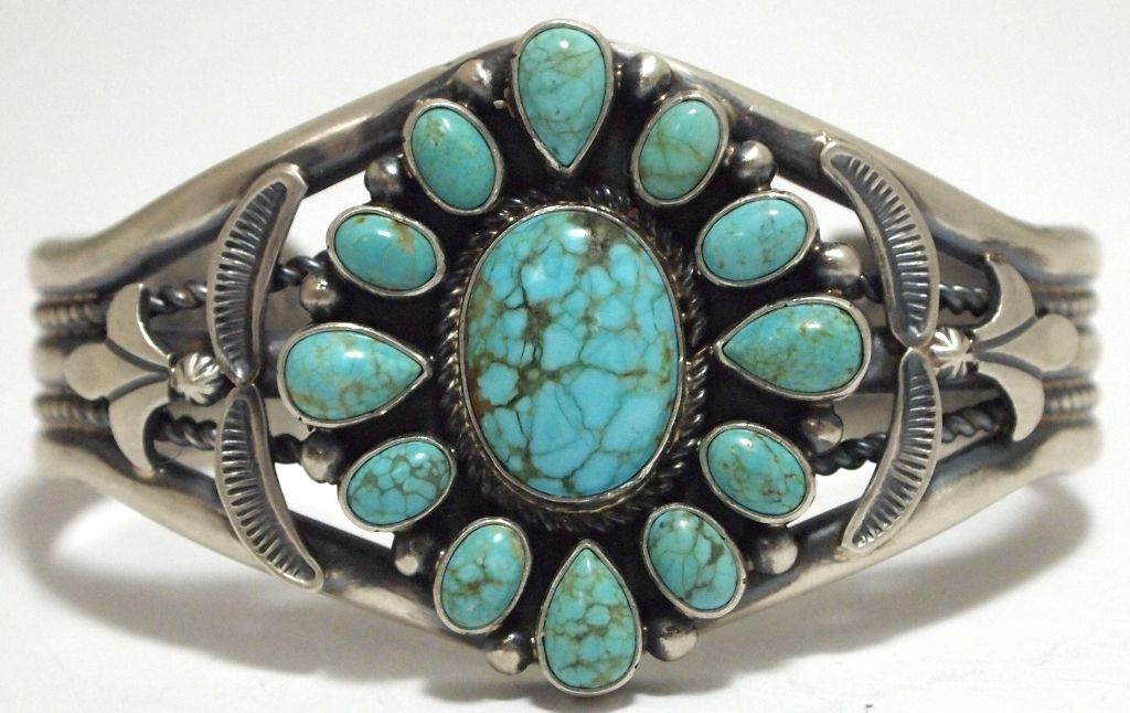 Old Pawn Navajo Spider Web Kingman Turquoise Sterling Silver Cuff Bracelet - SH