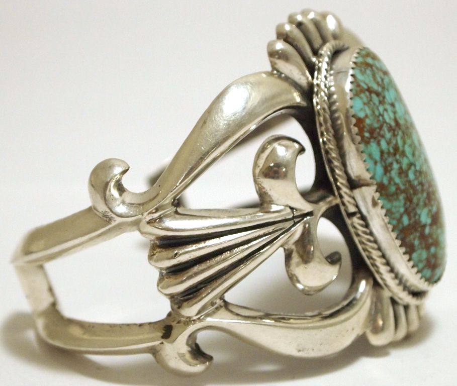 Old Pawn Navajo Spider Web Kingman Turquoise Sterling Silver Cuff Bracelet - WBH