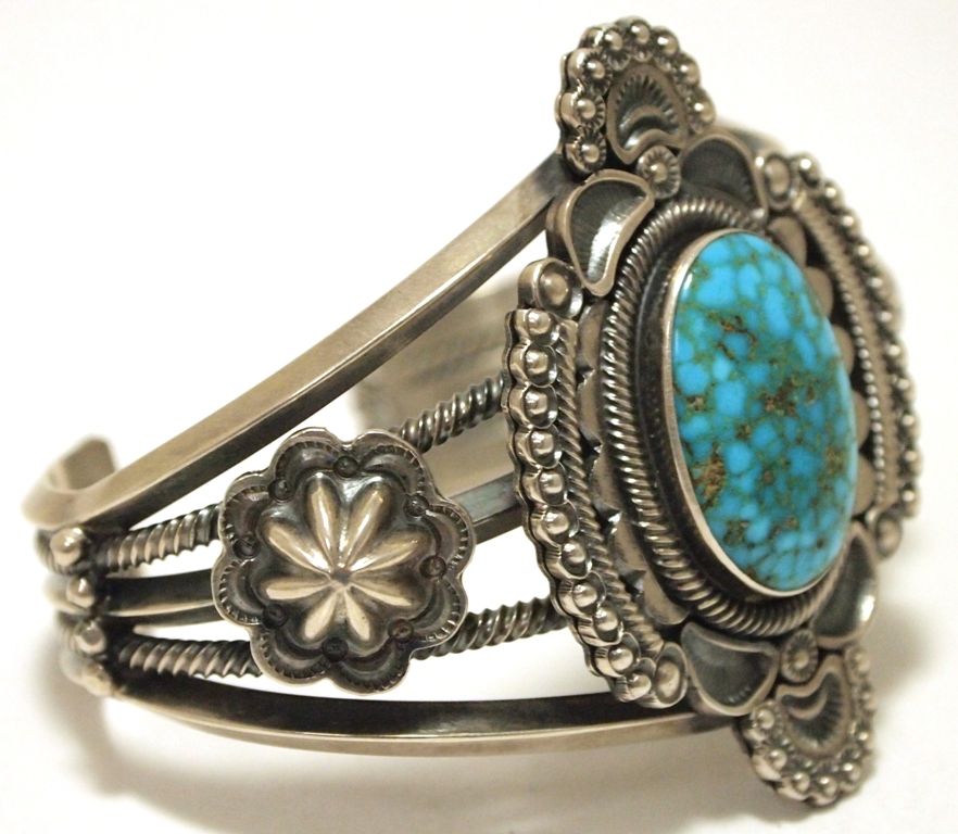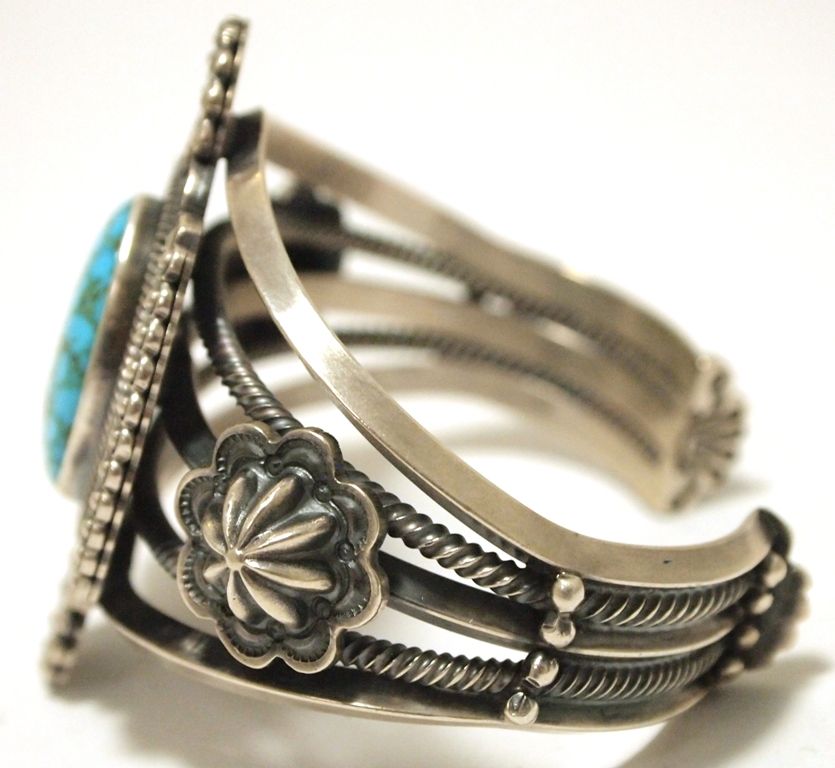 Old Pawn Navajo Spider Web Kingman Turquoise Sterling Silver Cuff Bracelet - Wallace Yazzie, Jr.