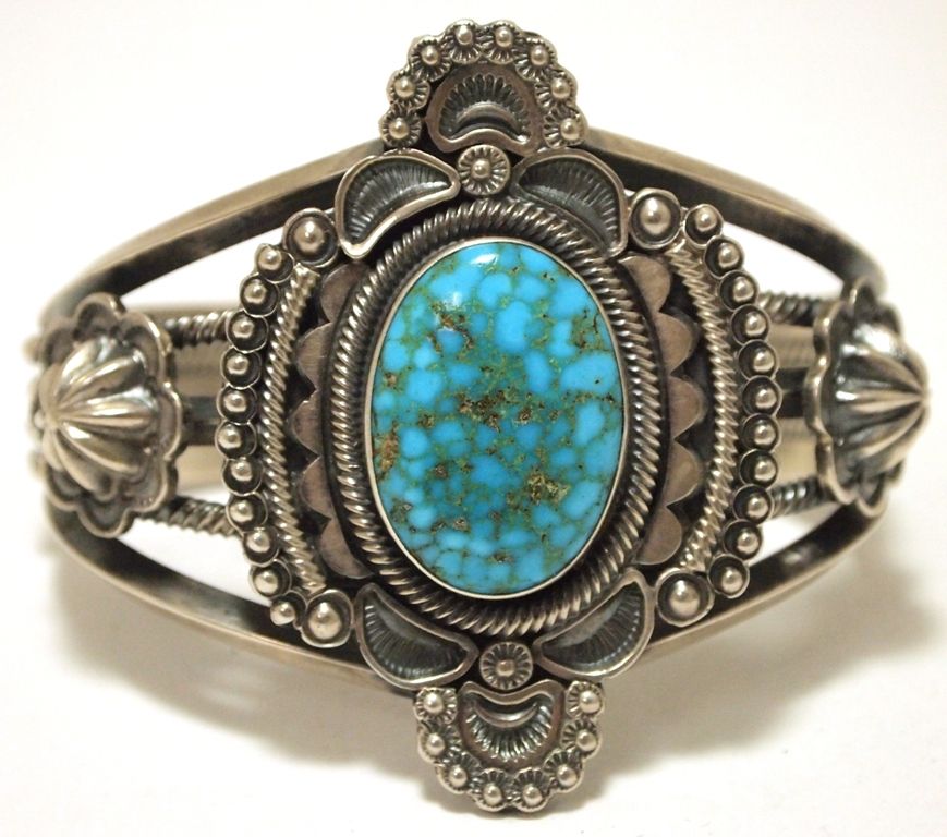 Old Pawn Navajo Spider Web Kingman Turquoise Sterling Silver Cuff Bracelet - Wallace Yazzie, Jr.