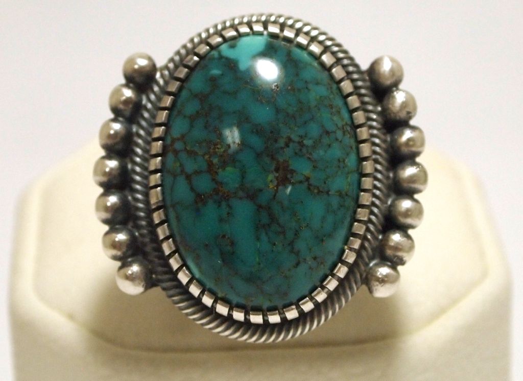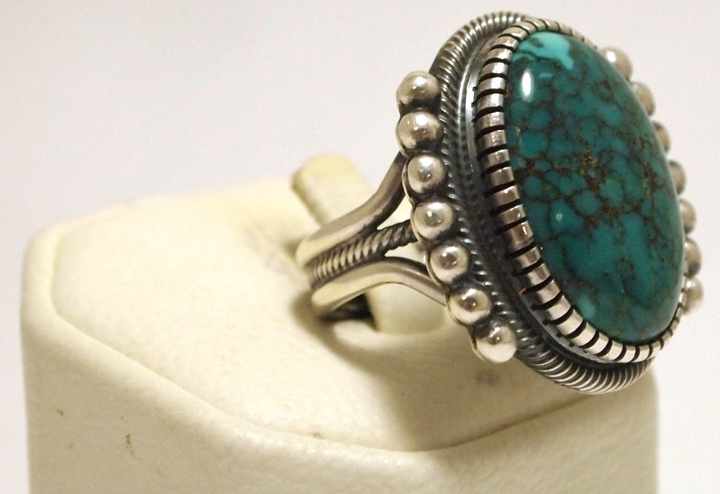 Old Pawn Navajo Spider Web Kingman Turquoise Sterling Silver Men's Ring - Kirk Smith