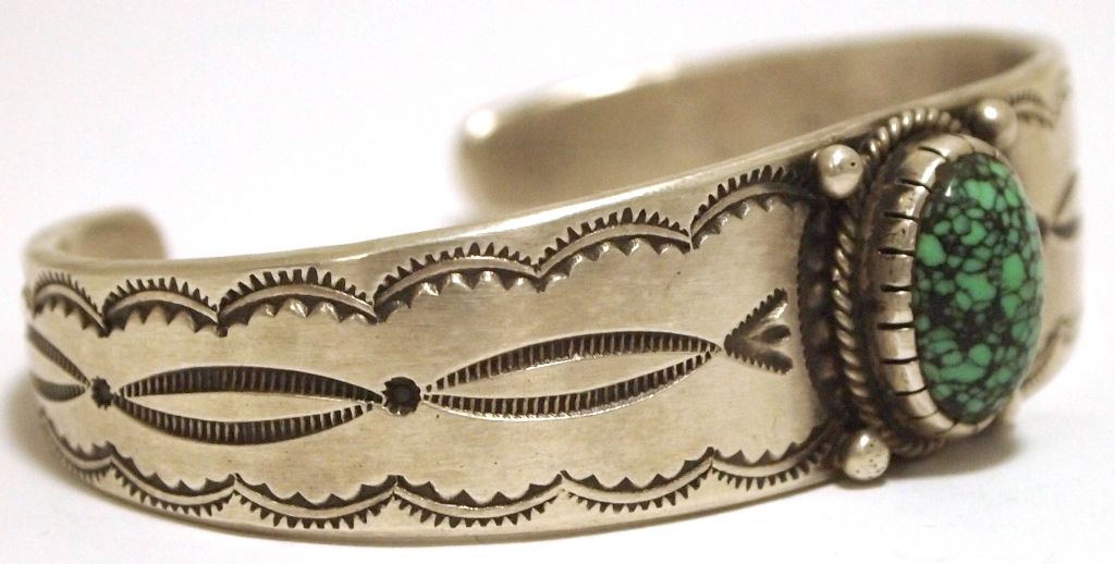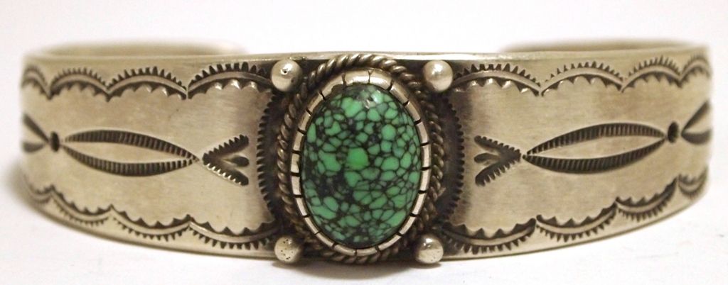 Old Pawn Navajo Spider Web Turquoise Sterling Silver Cuff Bracelet - Calvin Martinez