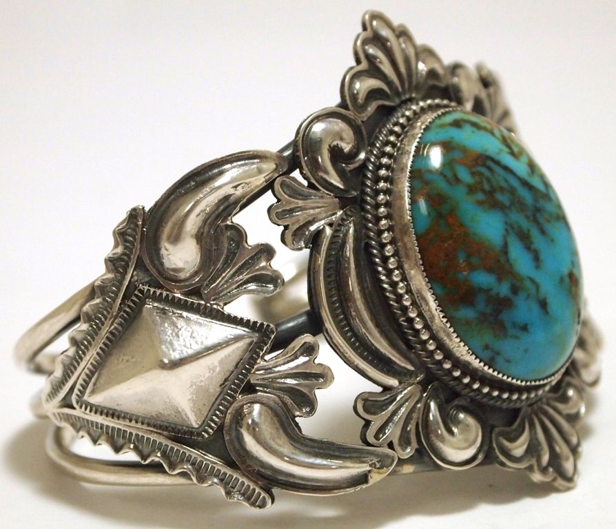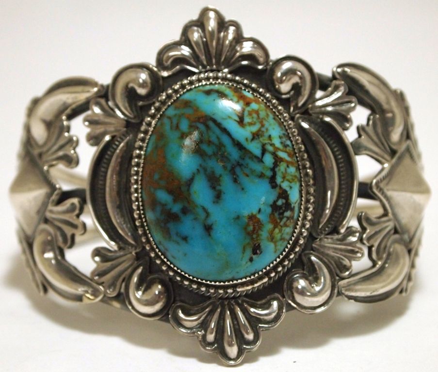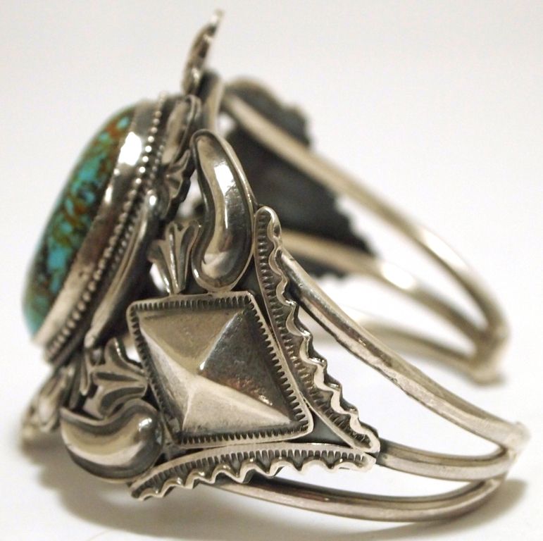 Old Pawn Navajo Spider Web Turquoise Sterling Silver Cuff Bracelet - KJ?
