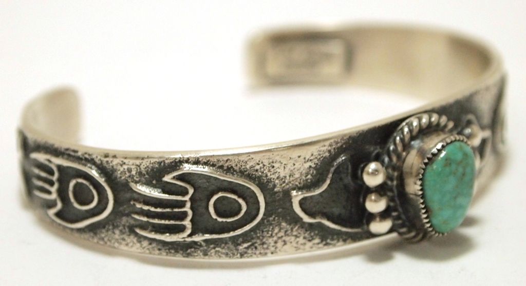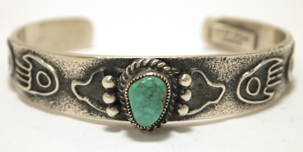 Old Pawn Navajo Spider Web Turquoise Sterling Silver Cuff Bracelet - Kirk Smith