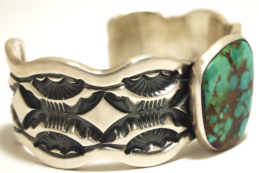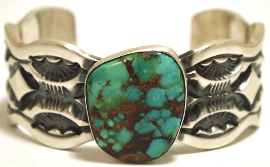Old Pawn Navajo Spider Web Turquoise Sterling Silver Cuff Bracelet - Mara Antia