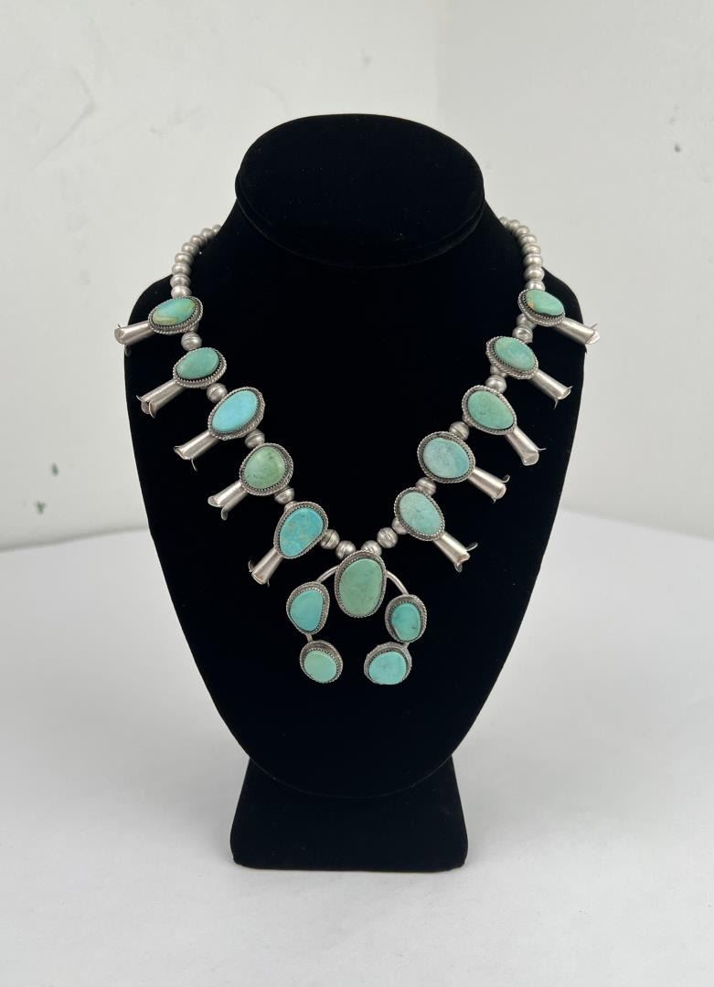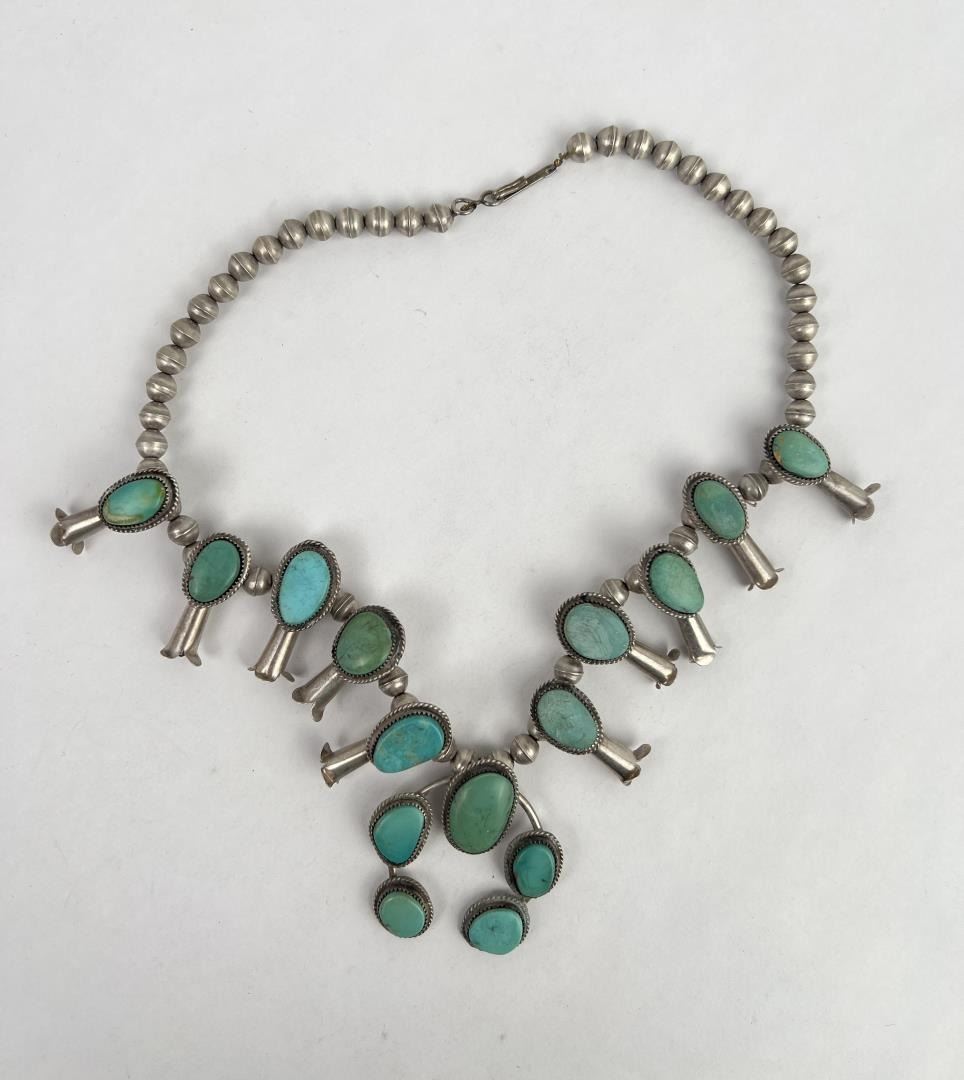 Wonderful old Squash Blossom Necklace. Turquoise set in Sterling Silver.