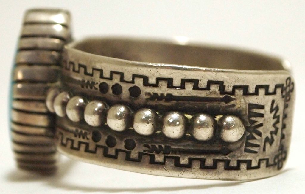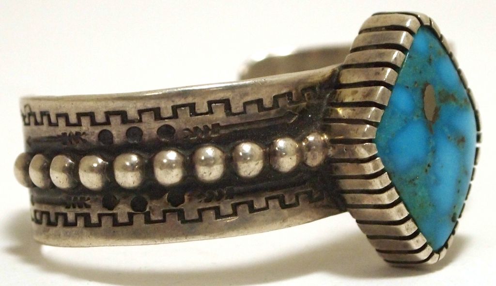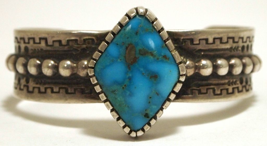 Old Pawn Navajo Stormy Mountain Turquoise Sterling Silver Small Cuff Bracelet - Bruce Hayles