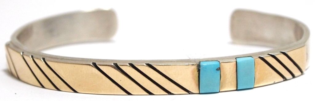 Old Pawn Navajo Turquoise & 14k Gold over Sterling Silver Cuff Bracelet - T. Jon