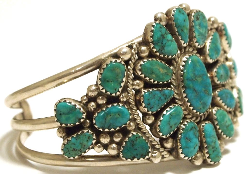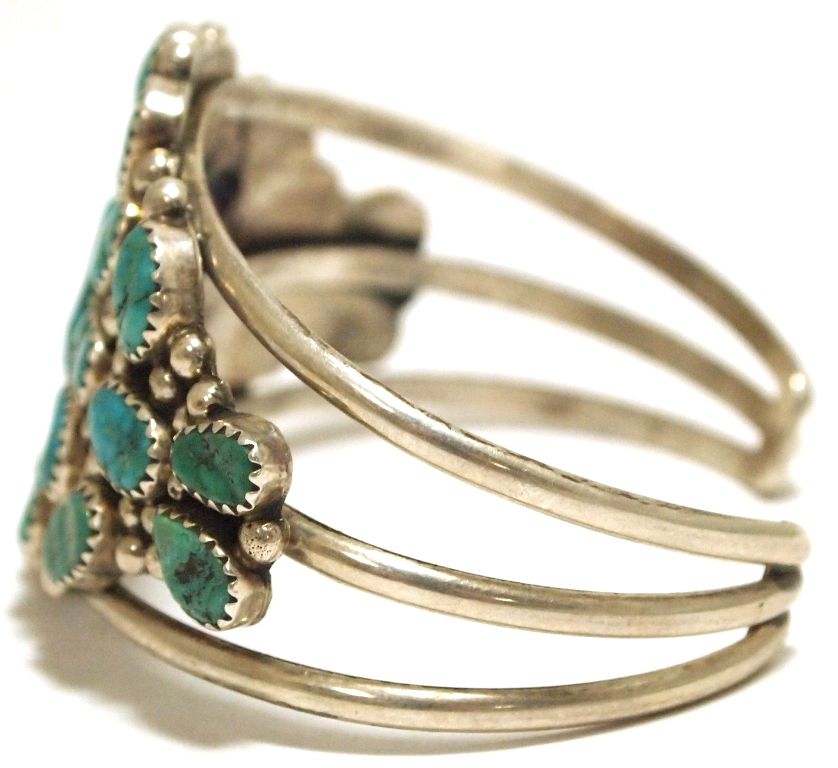 Old Pawn Navajo Turquoise Cluster Sterling Silver Cuff Bracelet - AT?