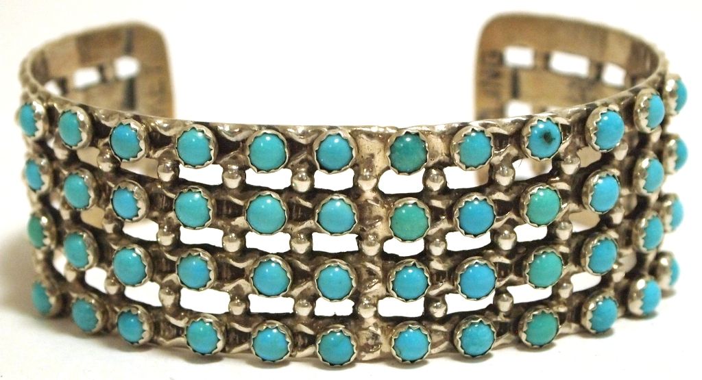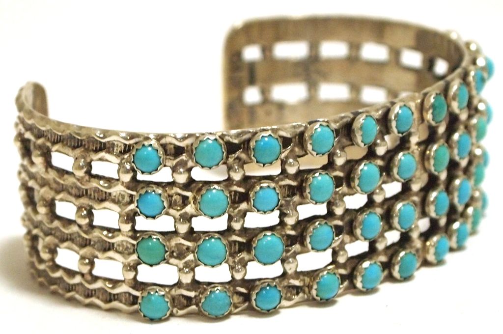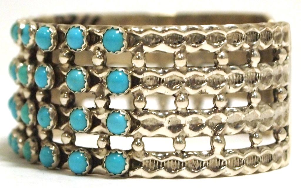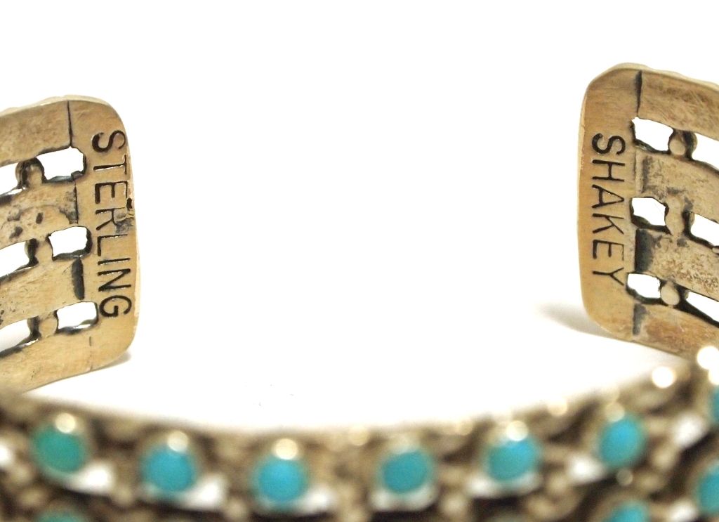 Old Pawn Navajo Turquoise Dots Sterling Silver Cuff Bracelet - Shakey