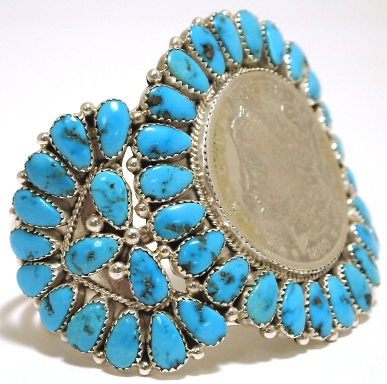 Old Pawn Navajo Turquoise Morgan Dollar Sterling Silver Cuff Bracelet - Justin Wilson