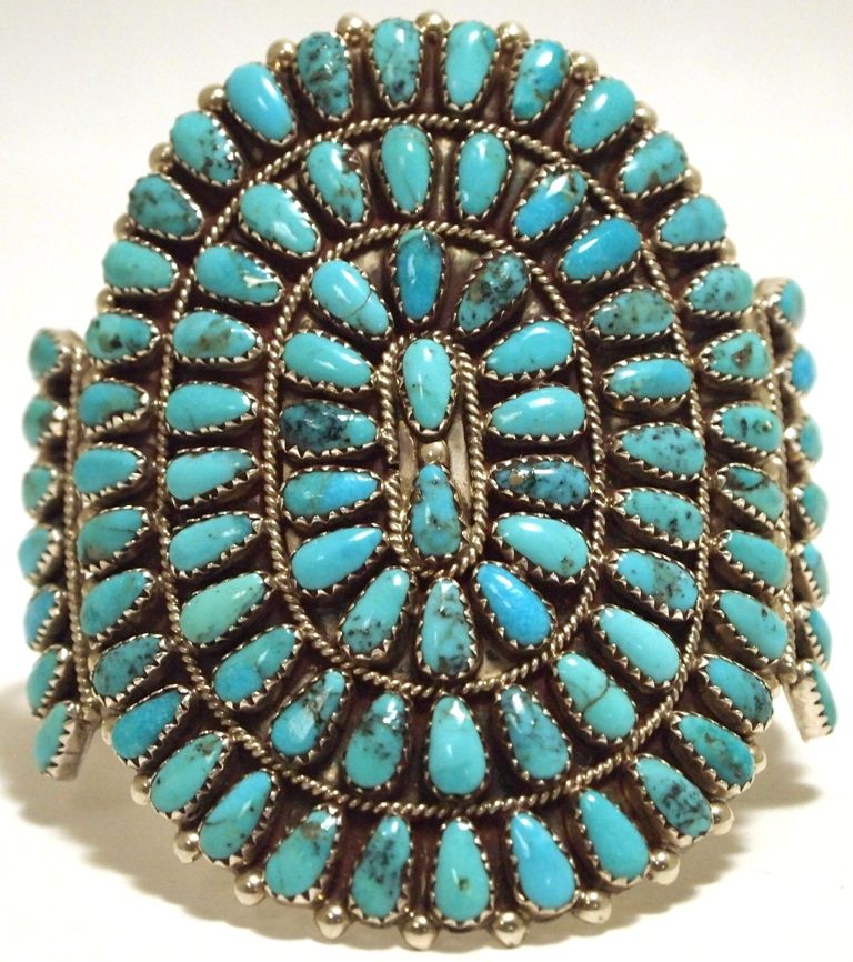 Old Pawn Navajo Turquoise Needlepoint Sterling Silver Cuff Bracelet - RT