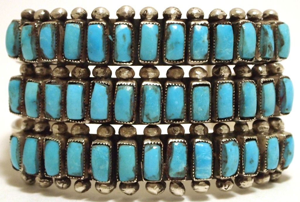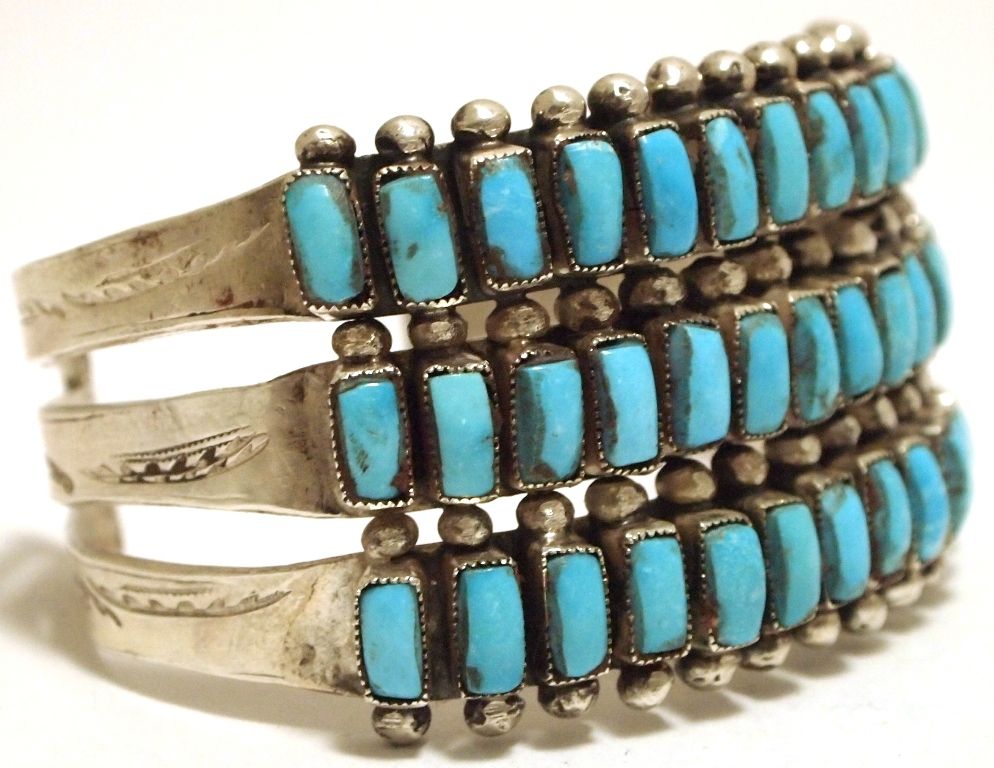 Old Pawn Navajo Turquoise Sterling Silver Cuff Bracelet - EQ