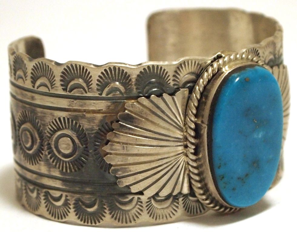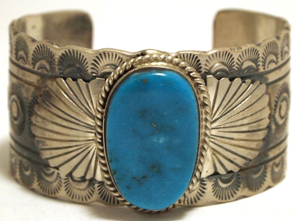 Old Pawn Navajo Turquoise Sterling Silver Cuff Bracelet - Mike Thomas, Jr.
