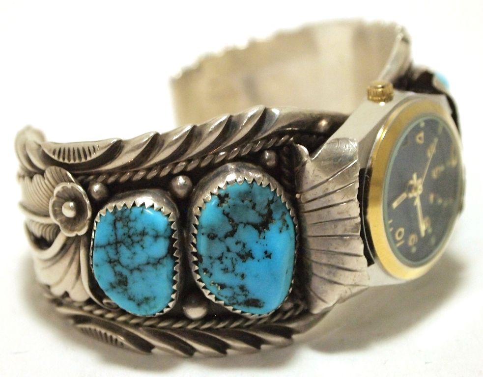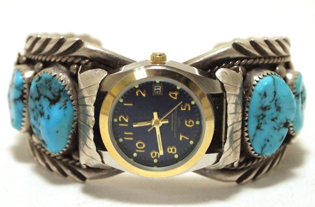 Old Pawn Navajo Turquoise Sterling Silver Cuff Bracelet Women's Watch - VV?