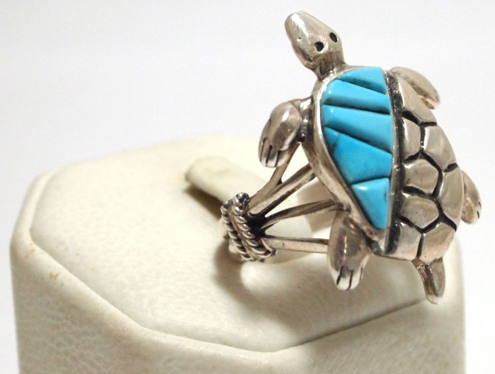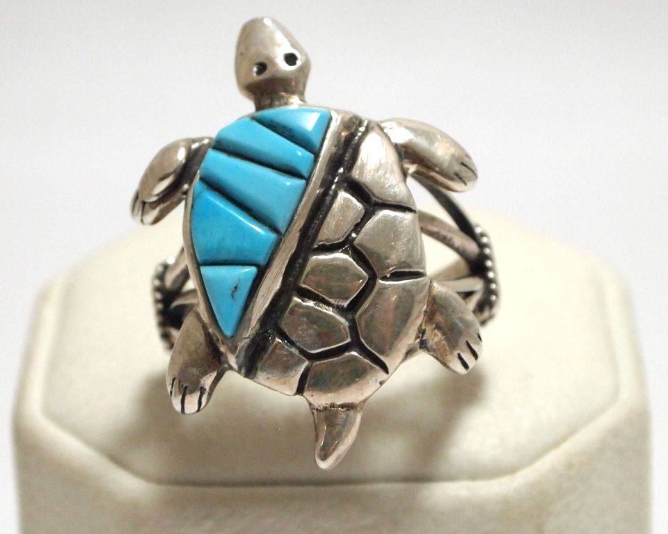 Old Pawn Navajo Turquoise Sterling Silver Turtle Men's Ring