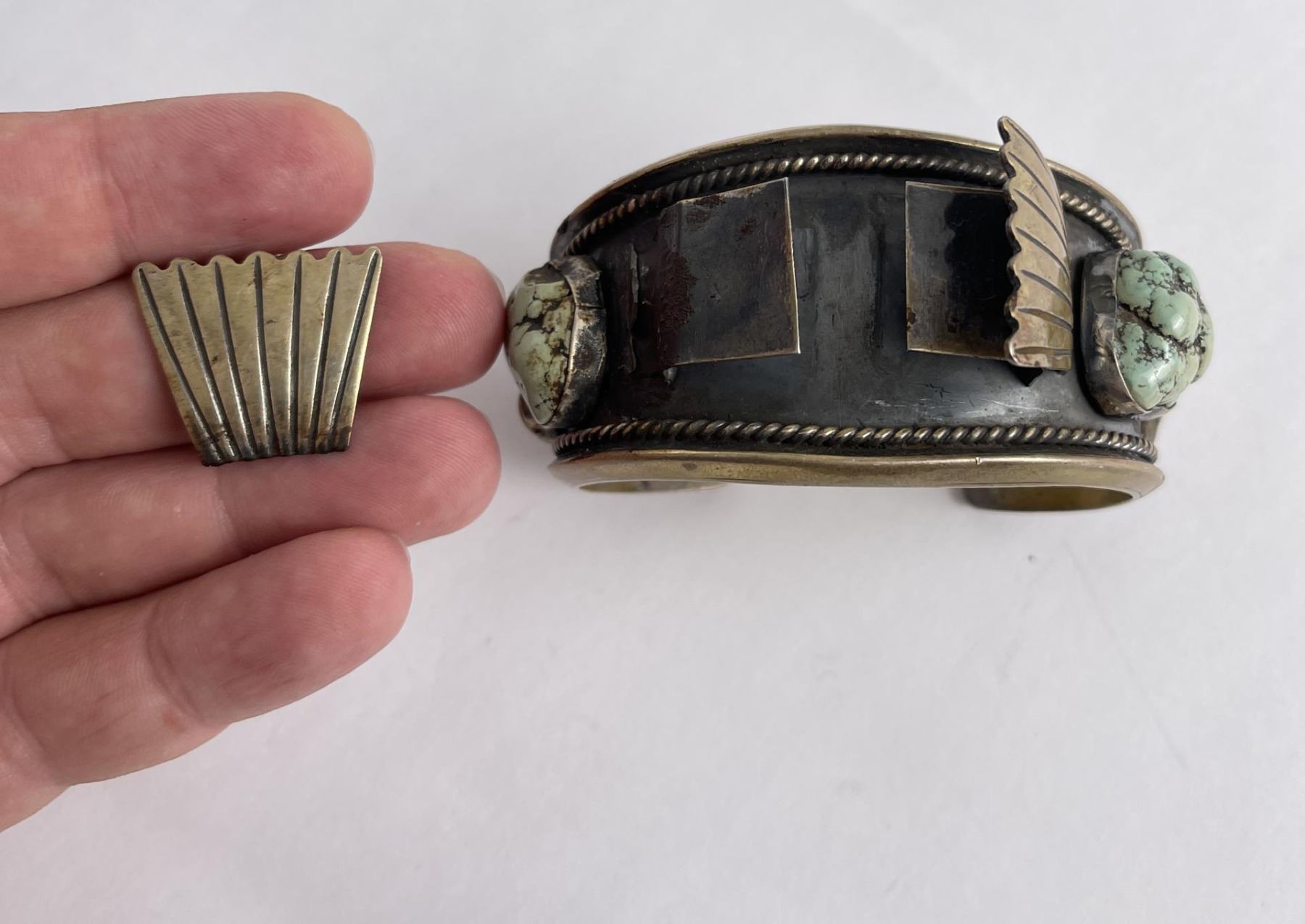 In need of repair as shown. Almost looks to be silver plated brass, either that or the silver has discolored from age.