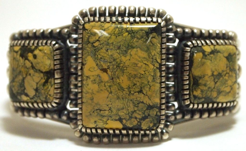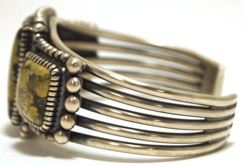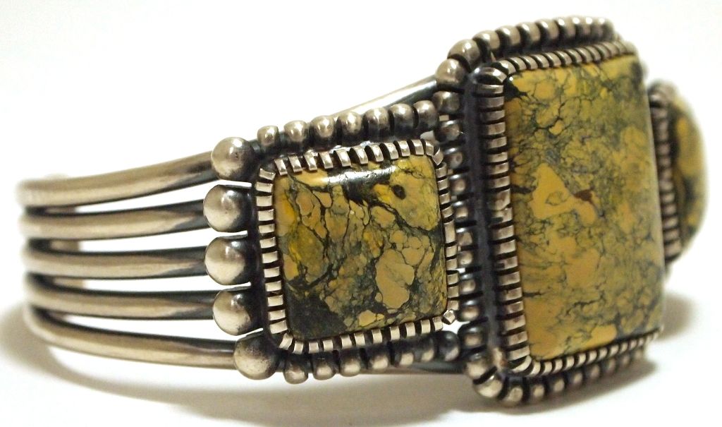 Old Pawn Navajo Yellow Spider Web Kingman Turquoise Sterling Silver Cuff Bracelet - Kirk Smith