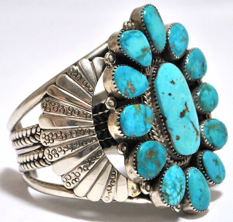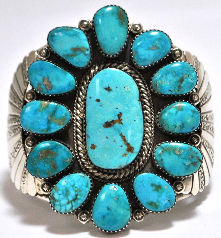 Old Pawn Rare Morenci Turquoise Sterling Silver Cuff Bracelet - M
